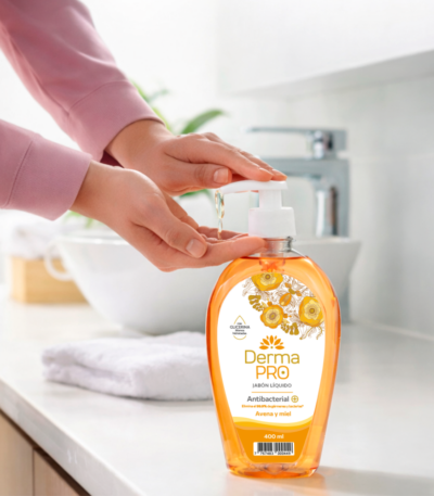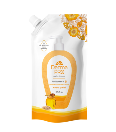 JABÓN ANTIBACTERIAL DERMAPRO – AVENA Y MIEL – 400ML