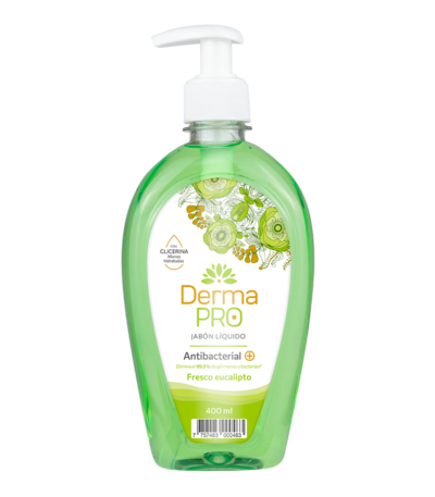 * Diseño de botella exclusivo * Acción antibacterial efectiva * Espuma cremosa y abundante * Con agentes humectantes * Fragancias de alta calidad Fragancias disponibles: * Lavanda — notas elegantes de lavanda francesa * Coco y Vainilla — notas dulces y cremosas * Avena y Miel — notas suaves y reconfortantes * Frutos del Campo — notas frutales frescas * Flor de Cerezo — notas florales dulces * Eucalipto — notas herbales frescas Sin fragancia — natural, sin perfume.JABÓN ANTIBACTERIAL DERMAPRO – EUCALIPTO – 400ML
