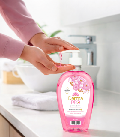 * Diseño de botella exclusivo * Acción antibacterial efectiva * Espuma cremosa y abundante * Con agentes humectantes * Fragancias de alta calidad Fragancias disponibles: * Lavanda — notas elegantes de lavanda francesa * Coco y Vainilla — notas dulces y cremosas * Avena y Miel — notas suaves y reconfortantes * Frutos del Campo — notas frutales frescas * Flor de Cerezo — notas florales dulces * Eucalipto — notas herbales frescas Sin fragancia — natural, sin perfume.JABÓN ANTIBACTERIAL DERMAPRO – FLOR DE CEREZO – 400ML