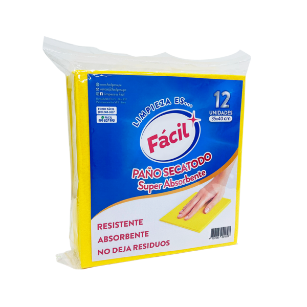 Paño Secatodo de alta absorción diseñado para secar superficies de forma rápida y eficiente. Su material resistente absorbe líquidos con facilidad y permite un uso continuo sin romperse ni deformarse. El acabado especial evita dejar residuos, pelusas o marcas.