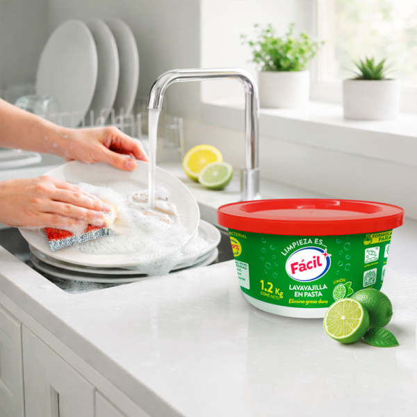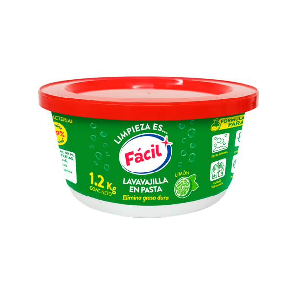 Lava Fácil en pasta es un lavavajilla de alto rendimiento con fórmula única para remover la grasa más difícil. Su textura semidura genera extra espuma, mejora la limpieza y enjuaga rápido, dejando platos y ollas impecables.