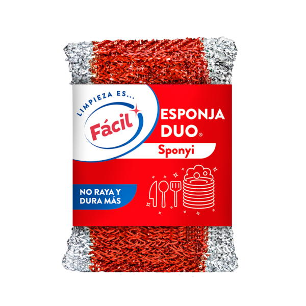 Spony es una esponja con tecnología única, fabricada con material resistente a químicos y envoltura de teflón que prolonga su durabilidad. Diseñada para lavar hasta 10,000 platos con una sola esponja, ofreciendo alto rendimiento en la limpieza diaria. Su forma ergonómica facilita el agarre y genera abundante espuma.