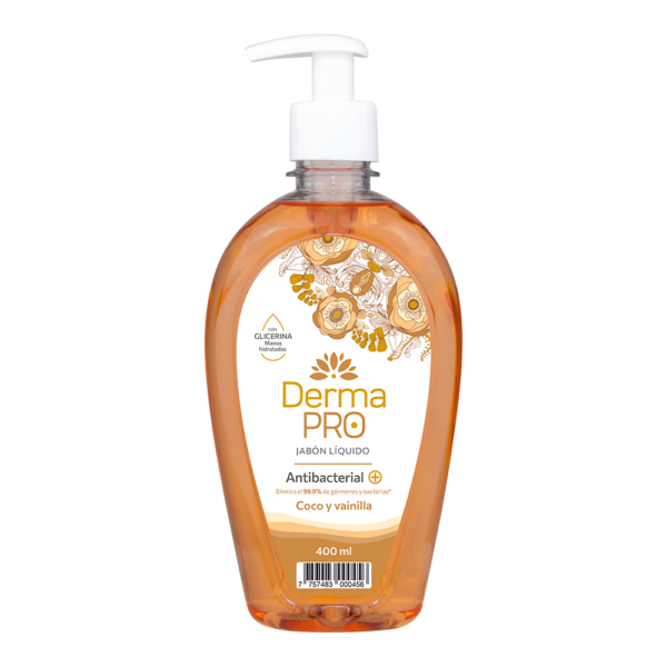 JABÓN ANTIBACTERIAL DERMAPRO – COCO Y VAINILLA – 400ML