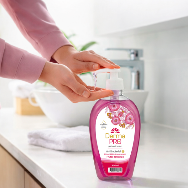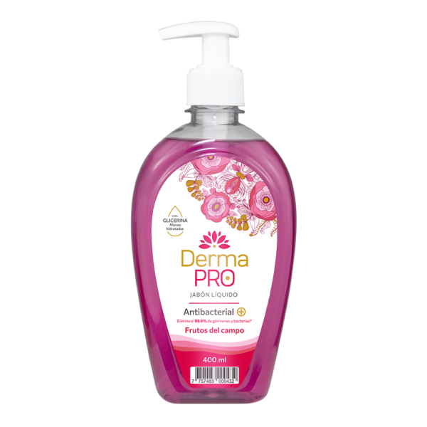* Diseño de botella exclusivo * Acción antibacterial efectiva * Espuma cremosa y abundante * Con agentes humectantes * Fragancias de alta calidad Fragancias disponibles: * Lavanda — notas elegantes de lavanda francesa * Coco y Vainilla — notas dulces y cremosas * Avena y Miel — notas suaves y reconfortantes * Frutos del Campo — notas frutales frescas * Flor de Cerezo — notas florales dulces * Eucalipto — notas herbales frescas Sin fragancia — natural, sin perfume.JABÓN ANTIBACTERIAL DERMAPRO – FRUTOS DEL CAMPO – 400ML