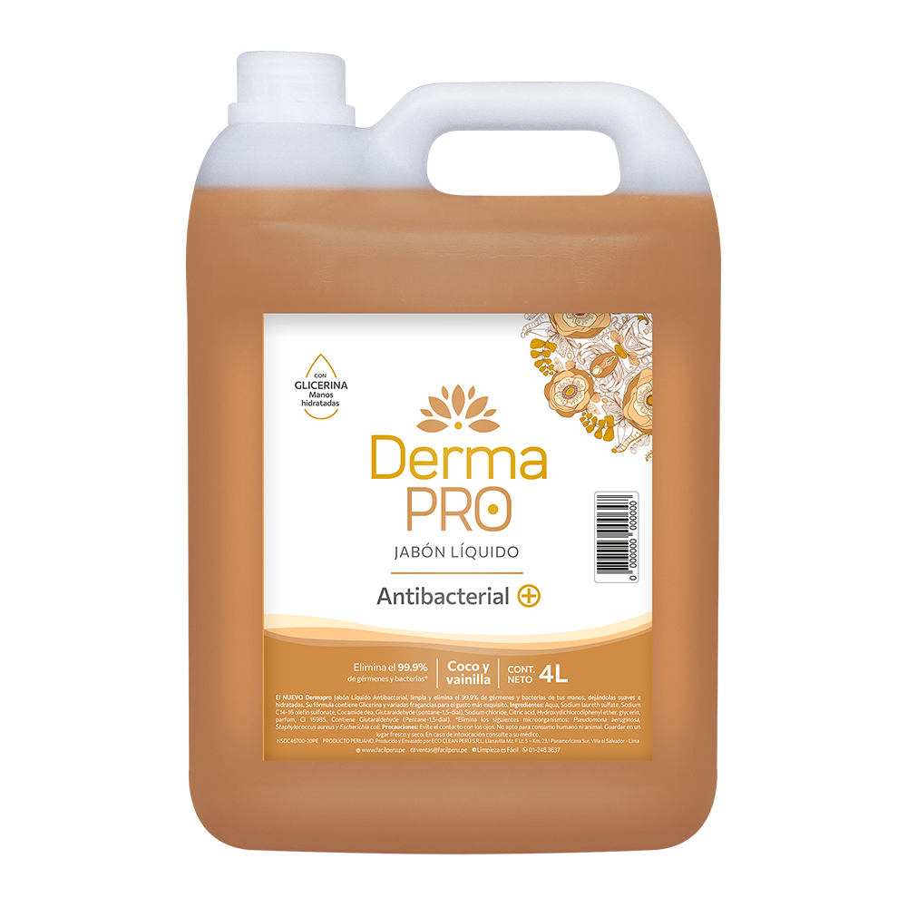 JABÓN ANTIBACTERIAL DERMAPRO – COCO Y VAINILLA – 4L