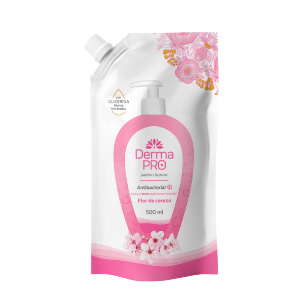 * Diseño de botella exclusivo * Acción antibacterial efectiva * Espuma cremosa y abundante * Con agentes humectantes * Fragancias de alta calidad Fragancias disponibles: * Lavanda — notas elegantes de lavanda francesa * Coco y Vainilla — notas dulces y cremosas * Avena y Miel — notas suaves y reconfortantes * Frutos del Campo — notas frutales frescas * Flor de Cerezo — notas florales dulces * Eucalipto — notas herbales frescas Sin fragancia — natural, sin perfume.JABÓN ANTIBACTERIAL DERMAPRO – FLOR DE CEREZO – 500ML