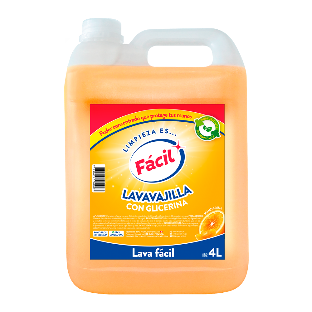LAVA FÁCIL – LAVAVAJILLA LÍQUIDA – MANDARINA – 4L