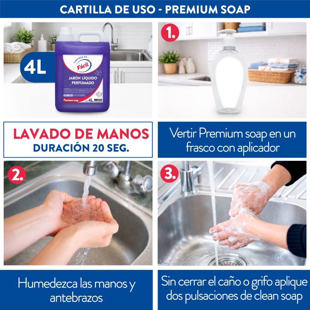 Premium Soap es un jabón de tocador perfumado diseñado para limpiar suavemente la piel en el uso diario. Su fórmula genera espuma cremosa que deja una sensación agradable y un aroma delicado después de cada lavado.