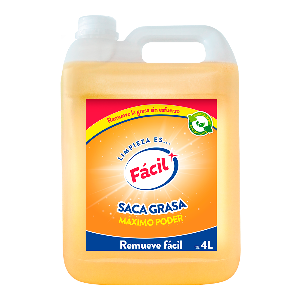 Remueve Fácil es el mejor saca grasa en el mercado, diseñado para disolver incluso la grasa más difícil. Su fórmula potente actúa rápidamente sobre grasa quemada y suciedad incrustada en cocinas, hornos y parrillas, facilitando una limpieza rápida y práctica.