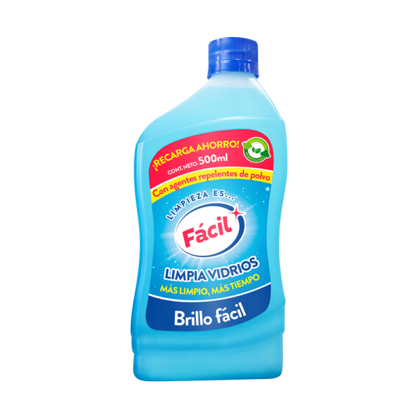 Brillo Fácil es el único limpia vidrios del mercado con agentes repelentes de polvo. Su fórmula crea una película antiestática que ayuda a repeler el polvo y mantener las superficies limpias por más tiempo. Limpia profundamente y se evapora rápido, dejando vidrios, espejos y mamparas con transparencia perfecta, sin marcas ni manchas.